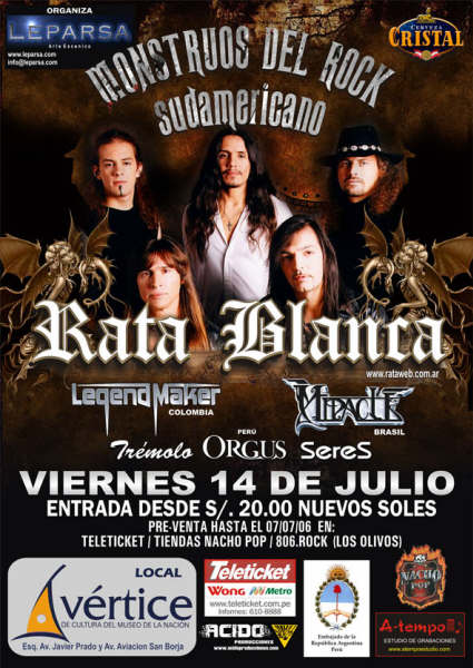 La banda principal era Rata Blanca -se trataba de un festival metalero-, y era lo primero que saltaba a la vista en el afiche. Sabía que Rata Blanca llegaría a Perú previamente a ver el afiche, y fue lo que me hizo pensar: “Vienes escuchando metal por años, ¿cómo podrías perderte este concierto?” Totalmente decidido, fui a comprar las entradas lo más pronto posible (ya había llegado acordado previamente con Álex para ir).
