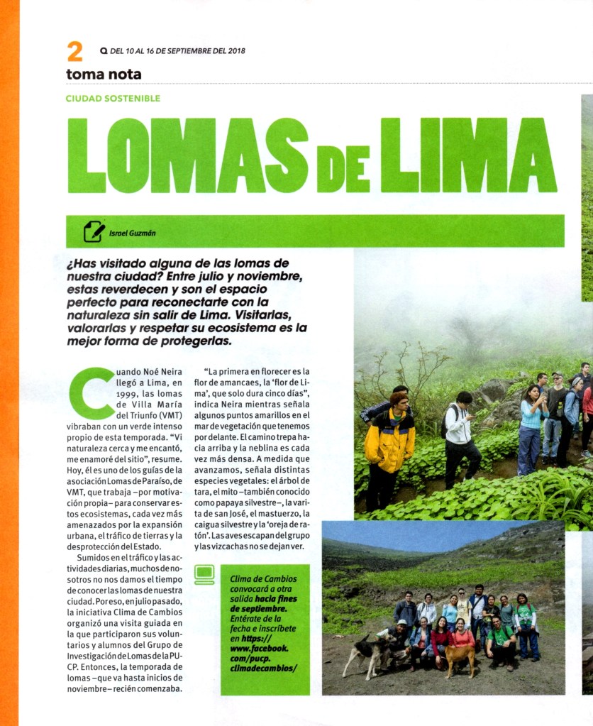 2018 «Lomas de Lima». PuntoEdu. Q, número 449. Lima, 10 de septiembre, pp. 2-3.