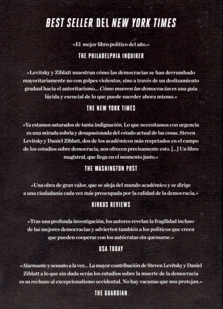 En referencia a Cómo mueren las democracias, de Steven Levitsky y Daniel Ziblatt (2018).