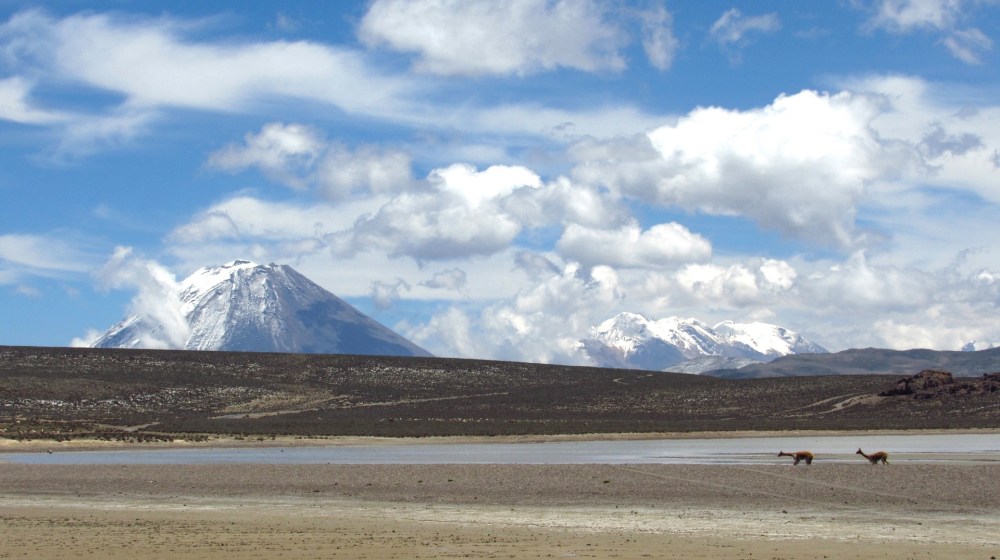 Al ver la laguna de Salinas, descubrí que no había cambiado mucho respecto de julio de 2018. Tengo la impresión de que es más una especie de salar que una laguna. No necesariamente hay una presencia marcada de agua, sino solo cuerpos de agua no muy voluminosos por aquí y por allá. En realidad, es un amplio espacio de territorio blanco o crema que se puede cruzar, aparentemente, sin dificultad. Como hacían los auquénidos del lugar, que, ciertamente, no solo corren libres, sino que los encuentras por todo el camino. En algunos casos, formando parte de rebaños (que también ves de ovejitas) y, en otros, imagino, de manera independiente.