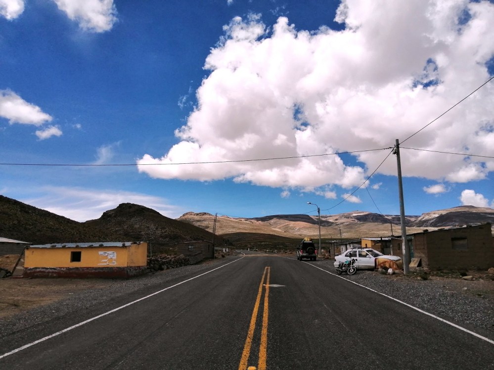 Seguimos nuestro recorrido mientras los turistas fueron quedando atrás, y lejos. De la misma forma, Salinas fue desapareciendo de nuestra vista, pero no mucho más adelante nos detuvimos para comprar alguna provisión en un centro poblado (en formación) que era cruzado por la carretera pero que, a grandes rasgos, parecía fantasma. Ni un alma. He tratado de ubicarlo en el mapa, pero debo lidiar con que las imágenes se actualizan cada tantos años. Entonces, si he podido encontrar algunas pocas viviendas agrupadas haciendo zoom, no tengo certeza de que ese haya sido el lugar, pero tampoco lo fue el centro poblado de Salinas Moche, que presenta un mucho más amplio trabajo de infraestructura que el lugar donde estuvimos según lo visto en el mapa.