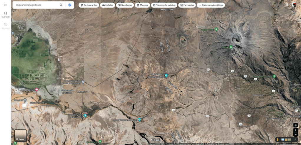 Había llegado a creer, por la información recibida, que, incluso antes del centro poblado mencionado, ya nos encontrábamos en Moquegua, pero no fue el caso. Si me guío del mapa, el pase de un departamento a otro está un buen tramo después de las aguas termales. Sin embargo, más llamó mi atención la visual de la montaña cuando, mientras más nos acercábamos, más se erguía frente a nosotros.