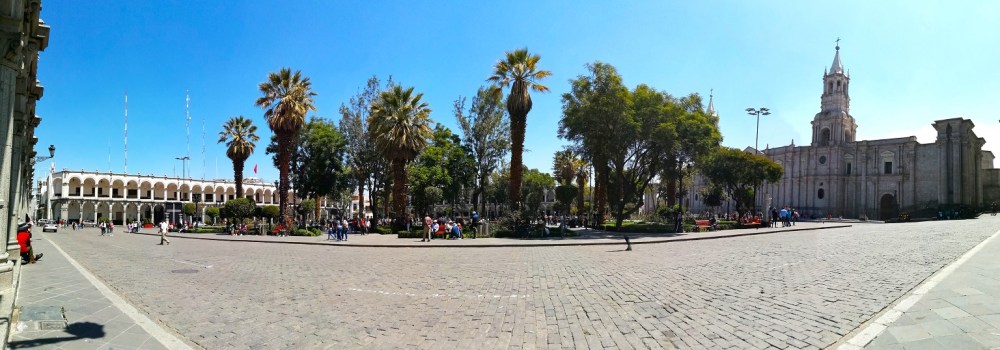Solicité guardar mi maleta grande guinda y salí a caminar con mi mochila pequeña negra. Necesitaba hacer tiempo hasta la hora del almuerzo y de ahí, luego, hasta la hora de salida al aeropuerto. Estuve en la Plaza de Armas, sentado en el escalón del borde de una de sus veredas, observándola y a la gente pasar. Poco después —o quizás no lo capté de inmediato— empezó una música en vivo. Un joven se sentó de frente a la Catedral con su parlante, guitarra en brazos y micrófono, y empezó a tocar. Desde donde estaba no lo veía, pero me dirigí hacia los escalones de aquella cuando la sombra ya me había dejado.