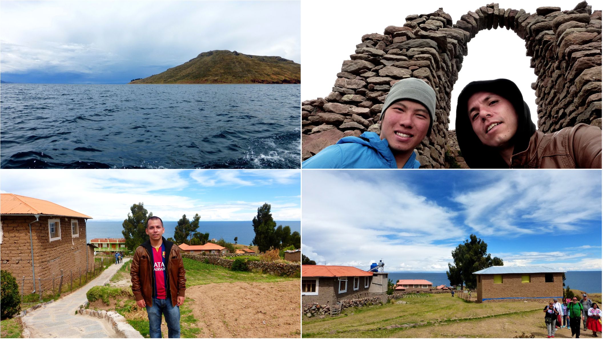 Llegamos a la isla Amantaní, que tiene una población aproximada de 4000 personas 3. Bajamos con el bagaje (nunca había usado esta palabra) esta vez 4. Avanzamos por el puerto y recorrimos un breve sendero escalonado en subida hasta llegar a la primera loma, donde un grupo de anfitrionas locales nos estaban esperando. En aquel pequeño trayecto, Liu entabló una amena conversación con Rocío, la peruana que ya había mencionado en mi publicación anterior, quien iba con Dani, su amiga alemana que no hablaba mucho español.