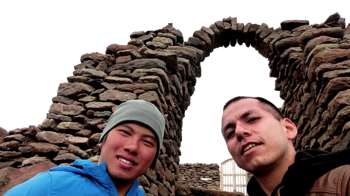 Retornamos al punto más alto y vimos que los demás habían llegado o recién lo hacían. Estuvimos allí un rato descansando, apreciando los alrededores. Las personas, dispuestas en grupos según sus amistades y conocidos, tomaban fotos y conversaban. Por el camino, encontrabas adolescentes o señoras que vendían trabajos hechos a mano. Una señora, además, vendía cerveza y entre Liu y yo compramos una. Llegaron las chilenas y estuvieron también explorando. Mi amigo les ofreció tomarles fotos con el paisaje que estaba detrás de nuestra apacheta.