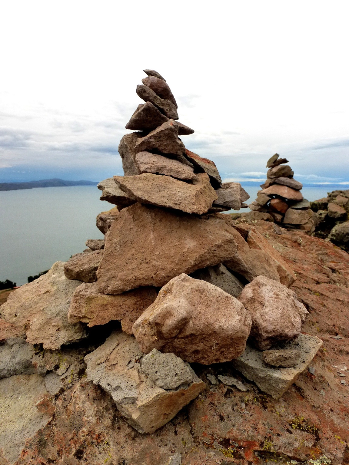 Bajamos de Pachatata y volvimos a subir, esta vez, hacia Pachamama. Al llegar, estuvimos explorando el lugar. En un momento, construimos nuestra propia apacheta sobre una roca grande. Había diversas apachetas por el lugar, unas más grandes que otras. Luego de las respectivas fotos, fuimos a buscar otros bordes y descubrimos un peñasco a mediana distancia excelente para nuevas fotos, esta vez de lejos.