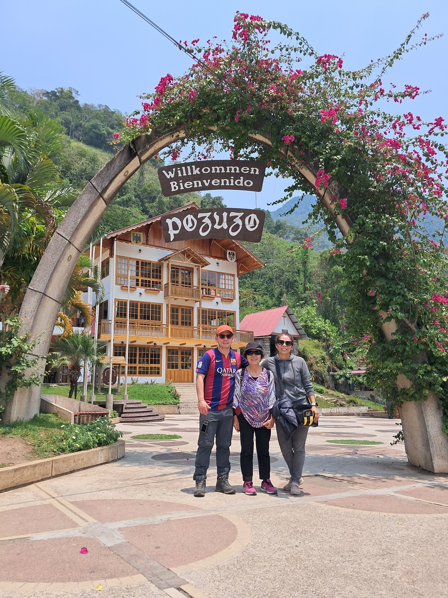Específicamente, nuestra parada fue antes de la última curva que conduce al interior de la localidad, donde se halla el portal de bienvenida: “Willkommen in Pozuzo. Única Colonia Austro – Alemana en el Mundo”. Allí, no solo bajamos para tomar fotos, sino también para comprar algunos suvenires y cervezas artesanales en el quiosco que estaba tan solo al costado.